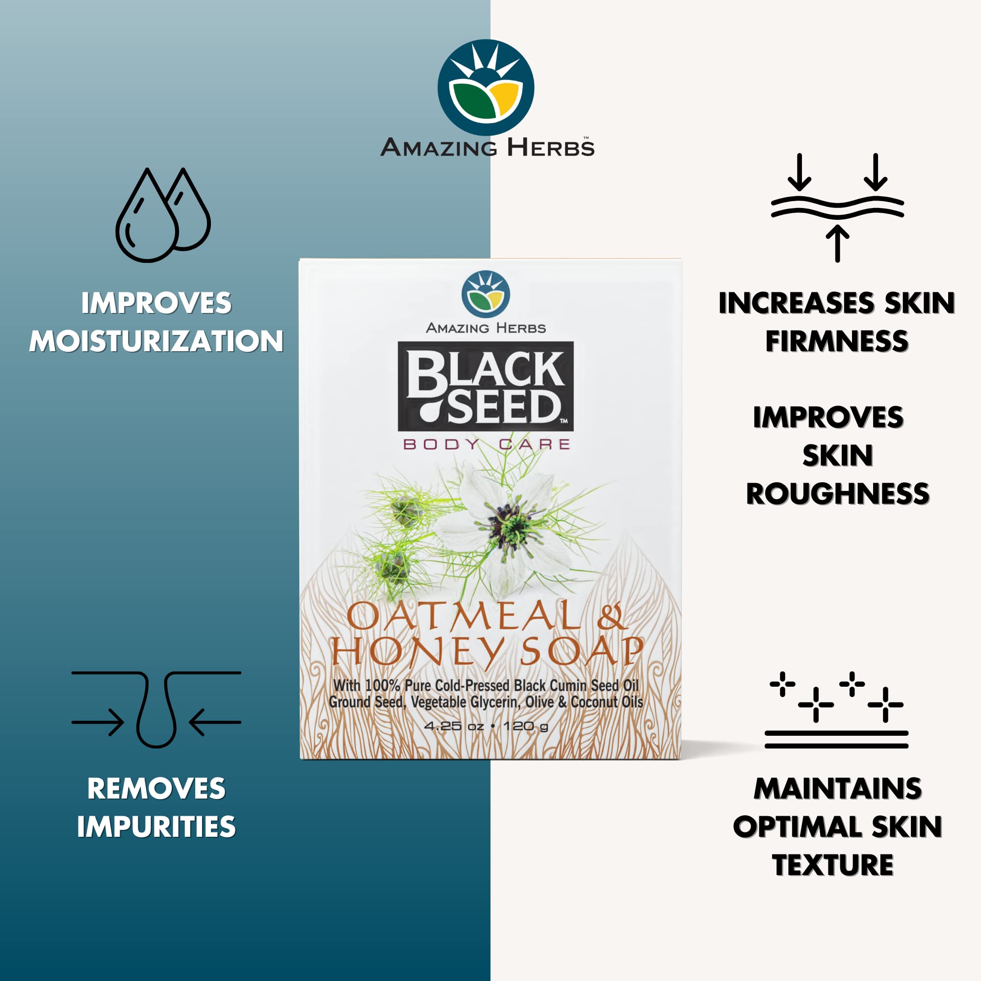 Amazon Com Amazing Herbs Black Seed Soap 100 Pure Cold Pressed Black Cumin Seed Oil All Natural Free Of Colors Dyes Fragrances Black Seed Oatmeal Honey Soap 4 25 Oz